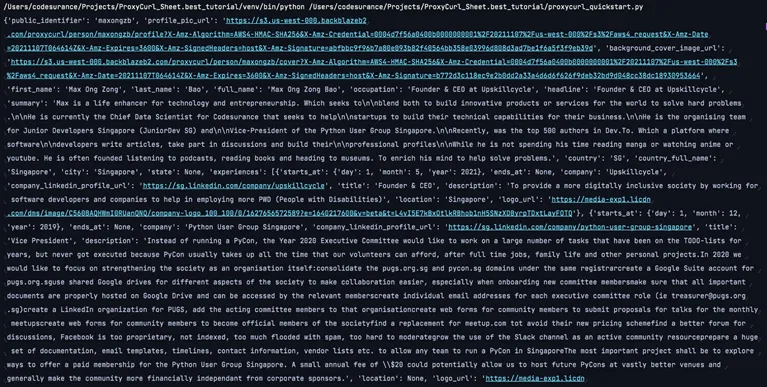 |— proxycurl_quickstart.py - Proxycurl quickstart program